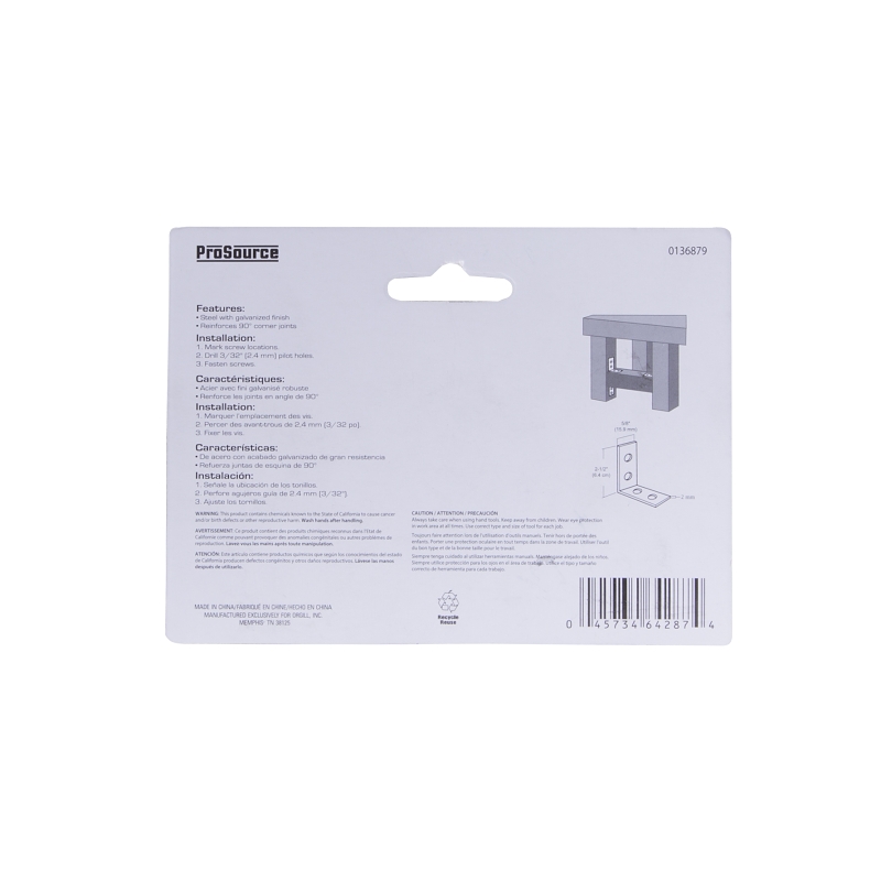 Home > Hardware > Builders Hardware > Braces > Corner Braces > ProSource CB-G025-C4PS Corner Brace, 2-1/2 in L, 2-1/2 in W, 5/8 in H, Galvanized Steel, Galvanized, 2 mm Thick Material