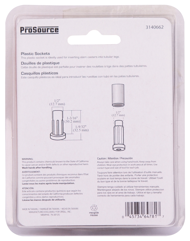 Home > Hardware > General Hardware > Casters Floor Protection > Caster Inserts > ProSource FE-S803-PS Furniture Socket, Plastic, Black