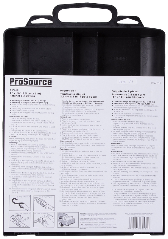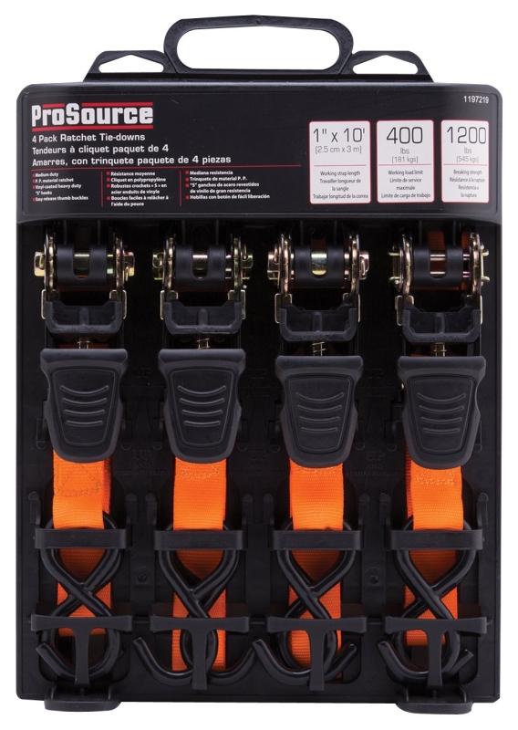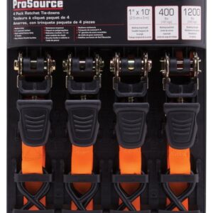 Home > Automotive > General Automotive > Towing and Top Carriers > Tie Down Accessories > ProSource FH64052 Tie-Down, 1 in W, 10 ft L, Polyester Webbing, Metal Ratchet, Orange, 400 lb, S-Hook End Fitting