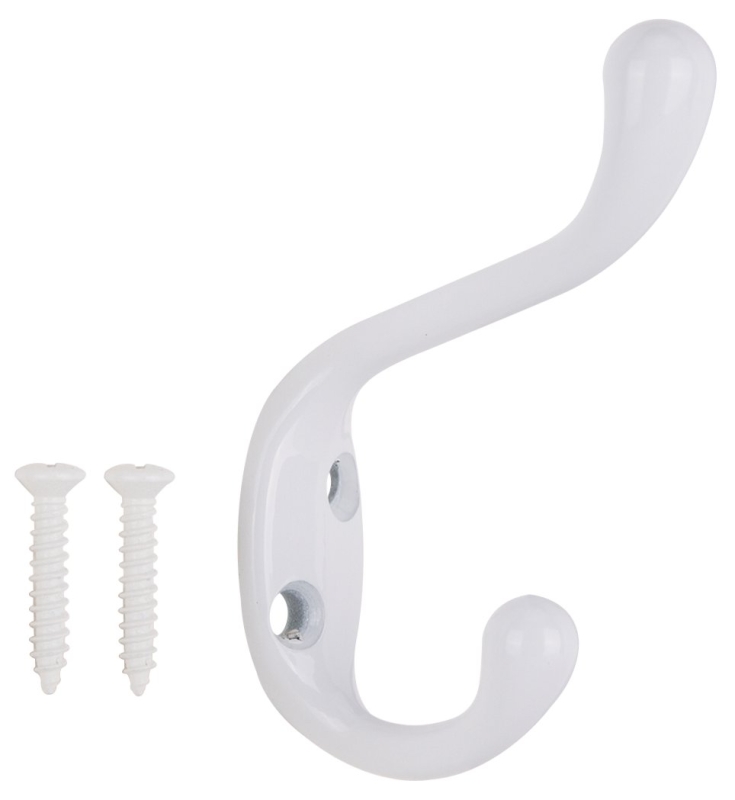 Home > Hardware > General Hardware > Home Finish Hardware > Coat Hooks > ProSource H6721007W-PS Coat and Hat Hook, 22 lb, 2-Hook, 1-1/64 in Opening, Zinc