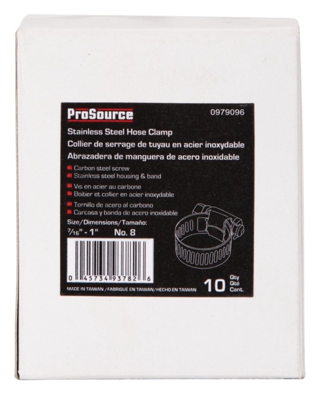 The ProSource hose clamps are multi purpose clamps used to seal hoses or pipes onto fittings. The hose clamps are the ideal choice for all forms of projects and application requiring hose clamps. It's designed with a stainless steel band and housing, and a carbon steel screw, making them more economical than clamps made only with stainless steel.