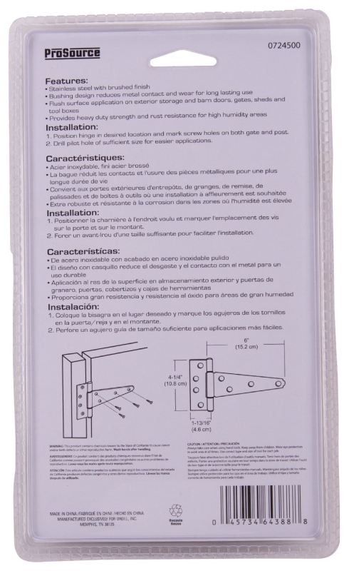 This Extra Heavy-Duty Hinge is designed for applications with narrow frame or post, such as tool chests, barn doors, shed doors, and gates. Can be used for left or right hand installations.Item Specifications