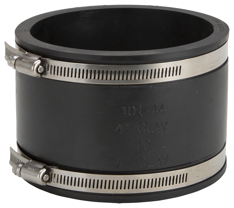 Home > Plumbing > Rough Plumbing Supplies > Pipe Repair > Rubber Flex Fittings > ProSource KJ-018 Coupling, 4 x 4 in, Clay to Clay, PVC, Black