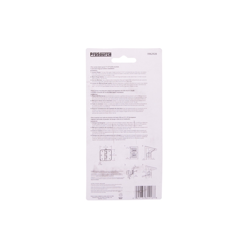 The ProSource door hinge pin type are loose. Surface mounting is made of steel and zinc. It measures 3 in L x 3 in W. Screws included.