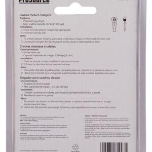 ProSource PH-122270-PS Picture Hanger, 30 lb, Steel, Polished Brass, Brass, Nail-In Mounting