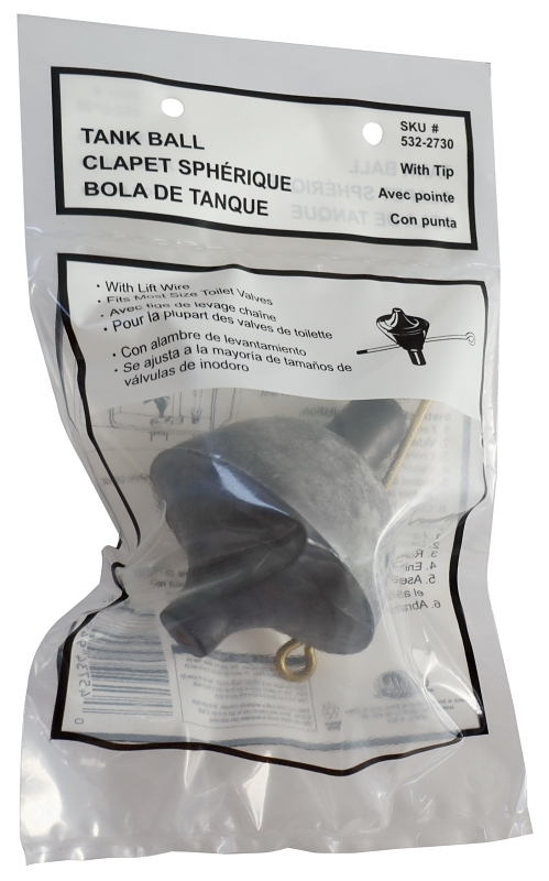 This is perfect for use in tank ball style flush valve models. The ProSource tank ball and 4.5 in lift wire is designed to be a high quality specialty replacement part for specific flush valves. Made with high quality rubber and durable brass, replacing faulty, or corroded tank balls, is quick and easy to install. The tank ball has a tapered design for the best seal, and the lift wire helps guide alignment with each flush.Item Specifications