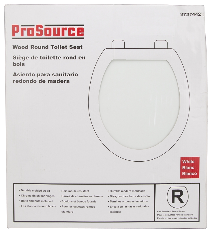 Home > Plumbing > Kitchen and Bath > Toilet Seats > Toilet Seats Wood Round > ProSource T-17WMC Toilet Seat, Round, MDF Molded Fiberboard, White, Bar Hinge