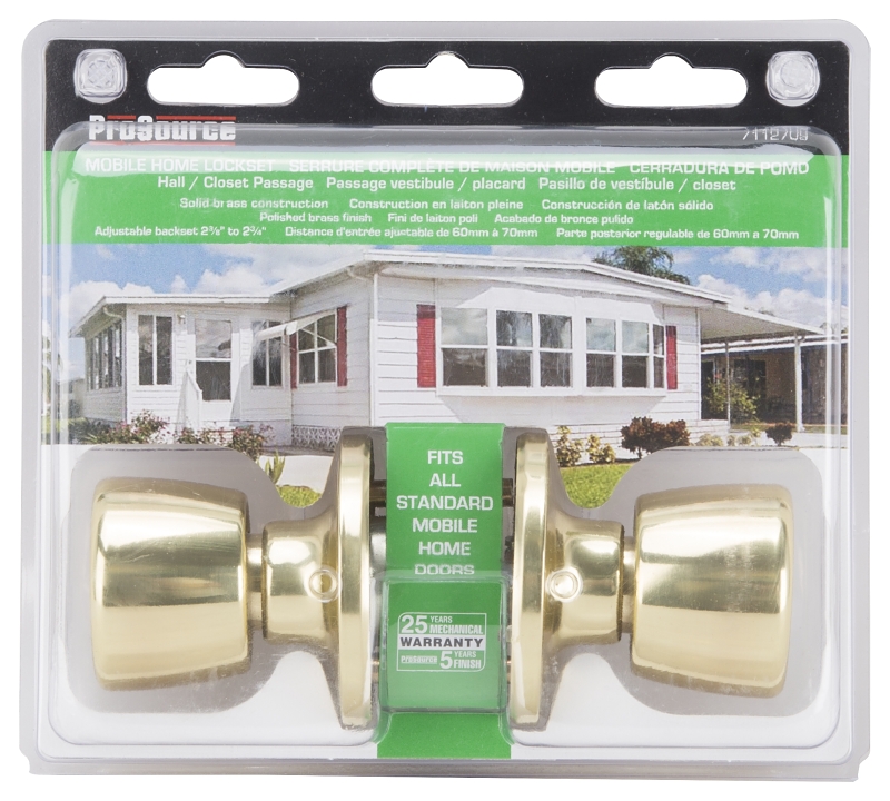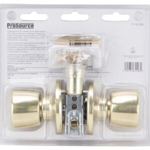 ProSource Door Knob Lockset, Design: Tulip, Knob Handle, Backset Type: Adjustable, Backset Size: 2-3/8 to 2-3/4 in, Edge Bore Diameter: 1 in, Cross Bore Diameter: 2-1/8 in, Door Thickness: 1-3/8 to 1-3/4 in, Latch Type: 2-Way, Strike Type: Full Lip Round Corner, Strike Size: 44 x 57 mm, Bolt Throw Size: 12.5 mm, Projection Size: 61.4 mm, Screw Mounting, Metal, Polished Brass, Suitable for: 1-3/8 to 1-3/4 in Thick Door.Item Specifications