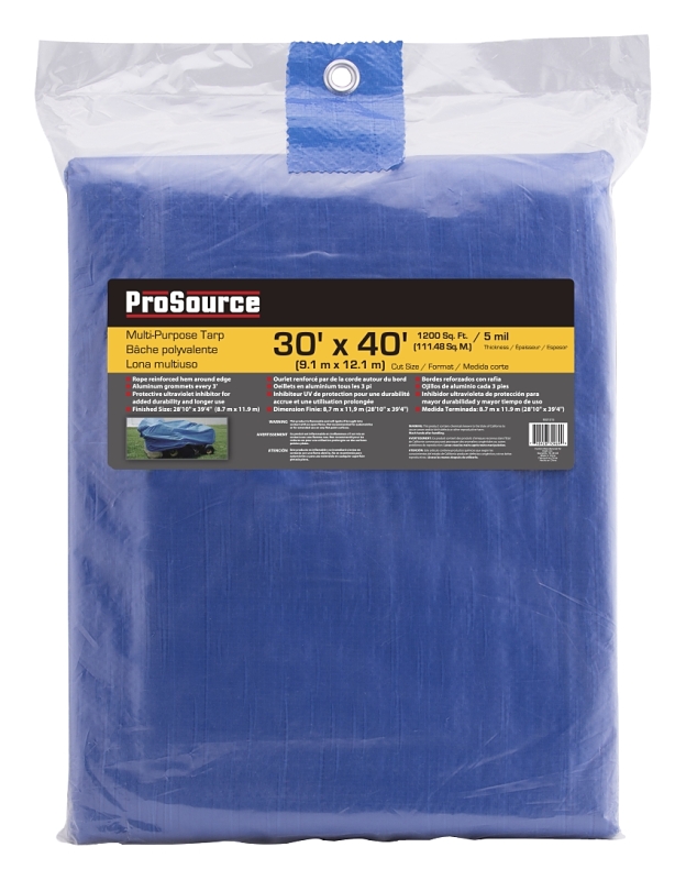 Storage tarp, 5 mil thick. Lightweight, tear and water resistant and pliable in cold weather. Rope reinforced hem. Rust-resistant aluminum grommets spaced every 3 ft. UV-coated.Item Specifications