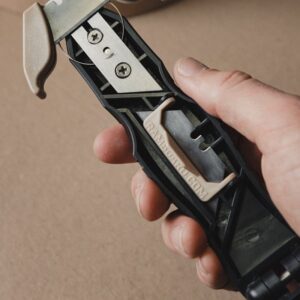 Using a regular box cutter or utility knife could result in scuffs or nicks, costing time and money in repairs. Cut that out of the equation with the Ram Board Multi Cutter. The Multi Cutter is a heavy-duty safety utility knife engineered to remove the risk of damage when cutting directly on your finished floors, counters and other surfaces. The Multi Cutter dual Edge-Guard System⢠protects both corners of the utility razor from touching the floor surface, leaving it scratch and scuff-free. The ergonomic design and anti-slip grip handle is made for comfort while the finger guards protect you while you cut. The handle can store up to four extra blades and provides easy access with a magnetic enclosure. The Ram Board Multi Cutter is durable and strong enough to cut a number of materials, including Ram Board, rosin paper, plastics, roofing felt, cable ties, cardboard and more.Item Specifications