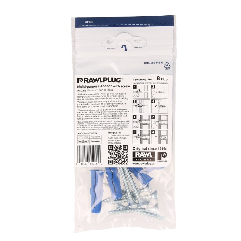 Rawlplug Rawl Uno Multi-Purpose Anchor, Screw Size: #9, Thread Type: Twin, Thread Size: 16 mm, 1-1/2 in L, PolypropyleneItem Specifications