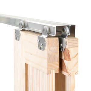 BP0022F series for Bypass closet door applications includes a aluminum double J-track with built in fascia to hide hanger hardware. Adjustable nylon rollers provide smooth rolling and can support panels up to 50 lb in weight. Available in various sizes.