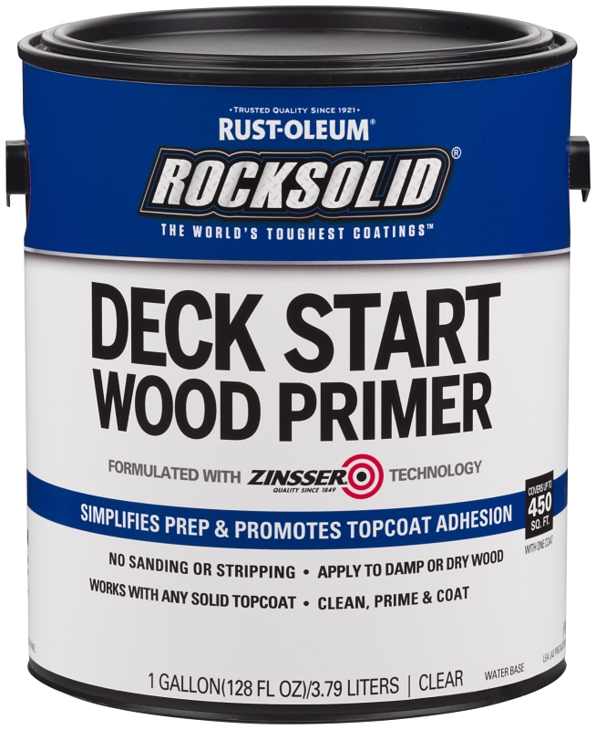 This groundbreaking clear primer completely changes the preparation process for deck resurfacing. Traditional preparation before applying a deck stain requires tedious process of stripping and sanding to prepare the wood. RockSolid deck start wood primer simplifies preparation and saves time by eliminating the need for stripping and sanding. Simply clean the surface, wait 30 min and remove standing water, then apply one coat of the primer. The deck is now ready to be coated with any solid color coating.Item Specifications