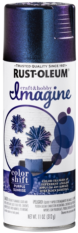 Rust-Oleum®'s imagine color shift colors contain advanced light interference pigments that change color depending on the light source. You only need to move your painted object around to see the color shifting effect from one color to the next! color shift paints provide a special effect to bikes, helmets, running boards, rims, skateboards and home decor items. Ideal for surfaces such as ceramic, metal, glass and plastic.Item Specifications