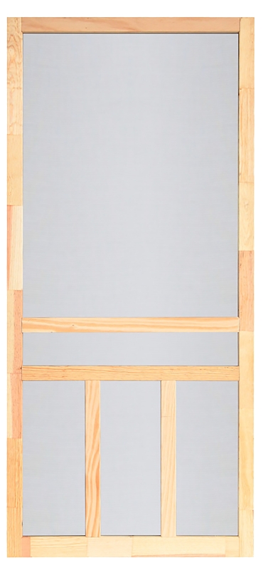 Bring fresh air and sunlight into your home with the Creekside screen door from Screen Tight. The double vertical and horizontal wood bars provide extra screen protection and added strength. This wood door is designed for extra durability and features a beautiful natural finish ready to be sealed, painted or stained to match your home's design.Item Specifications