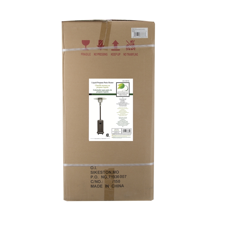 Enjoy your outdoor space even more during colder months with this durable, powerful outdoor propane heater. The Seasonal Trends propane patio heater produces 48000 BTU to help maintain a comfortable temperature for your patio. This propane patio heater offers durable, stainless steel construction and finish that will enhance any outdoor decor with sleek, modern style.Item Specifications