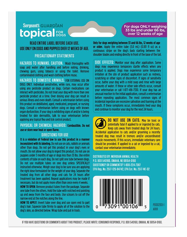 Home > Pet and Wild Bird > Dog and Cat Supplies > Dog and Cat > Flea and Tick Control Repellants > Sergeant’s Guardian 106 Flea and Tick Squeeze-On