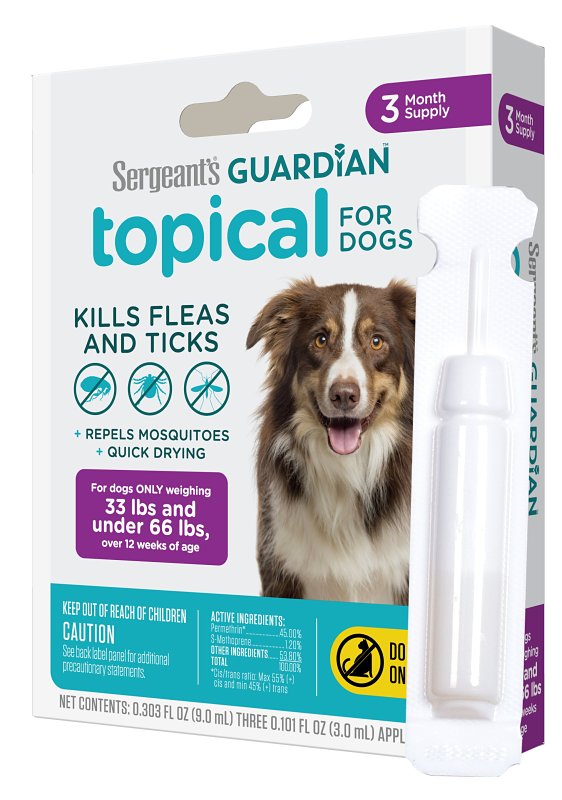 Sergeant's Guardian topical is a prevention for dogs that kills and repels fleas and ticks for up to 4 weeks. Sergeant's Guardian is an affordable way to protect your dog from fleas and ticks.
