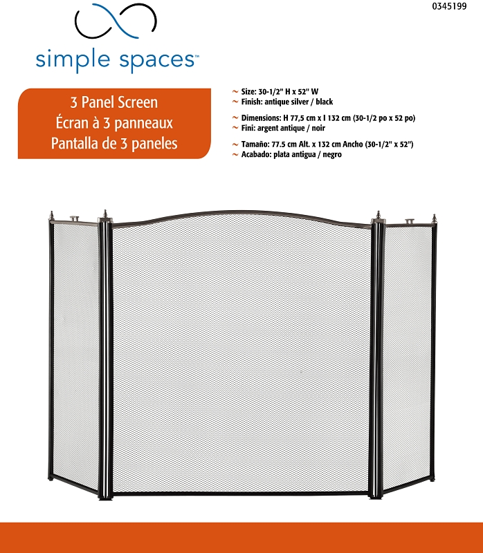 Home > Heating and Cooling > Fireplaces and Stoves > Fireplace and Accessories > Fireplace Screens > Simple Spaces C31020ASK3L 3-Panel Fireplace Screen, Antique Silver