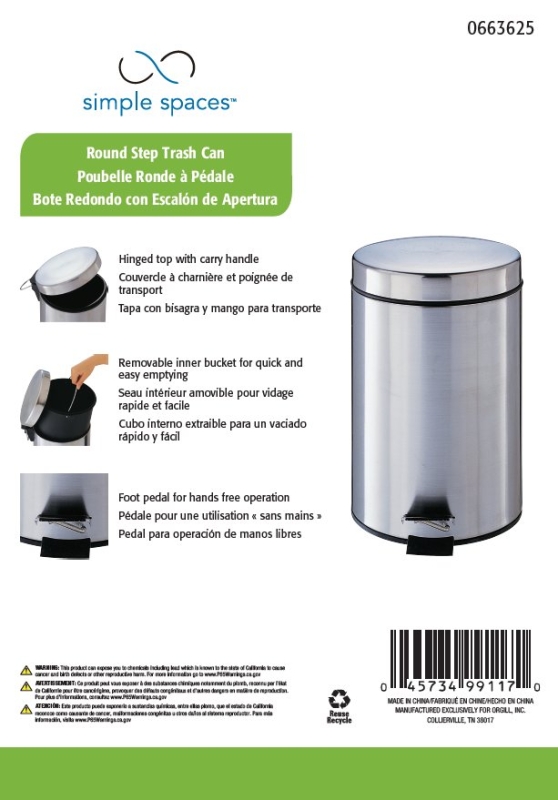 Home > Housewares > Cleaning Supplies > Trash and Recycle Cans > Trash Cans > Simple Spaces LYP07F3-3L Trash Can, 1.85 gal Capacity, Plastic/Stainless Steel/Steel, Silver, Flat Lid Closure
