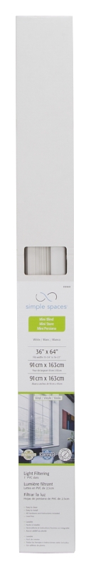 Simple Spaces Blind, Cordless, Mini, Vinyl, White, 64 in Length, 36 in Width, 0.33 mm Thickness, Inside Mounting, Suitable for: 35-3/4 to 36-1/2 W Window in, Includes: Mounting Hardware and InstructionsItem Specifications