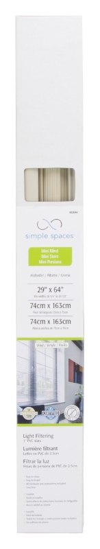 Simple Spaces Blind, Cordless, Mini, Vinyl, Alabaster, 64 in Length, 29 in Width, 0.33 mm Thickness, Inside Mounting, Suitable for: 28-3/4 to 29-1/2 W Window in, Includes: Mounting Hardware and Instructions