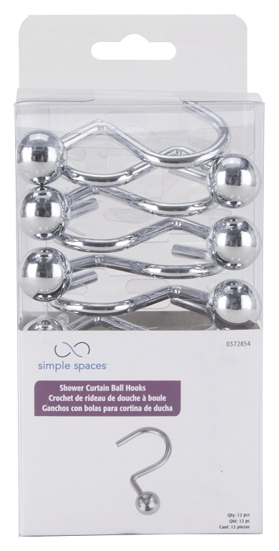 Home > Plumbing > Kitchen and Bath > Bathroom Hardware > Shower Curtains and Accessories > Simple Spaces SD-CBH-CH Ball Shower Curtin Hook, 1-1/16 in Opening, Steel, Chrome, 1-3/4 in W, 2-7/8 in H
