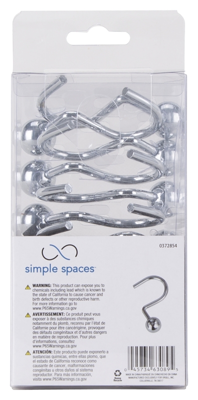 Simple Spaces SD-CBH-CH Ball Shower Curtin Hook, 1-1/16 in Opening, Steel, Chrome, 1-3/4 in W, 2-7/8 in H