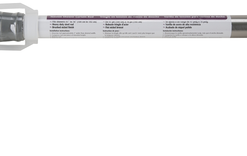 Simple Spaces Shower Curtain Rod, Straight, 7-1/2 lb Weight, Dimensions: 41-76 in, Adjustable Length: 41 to 76 in, Rod Diameter: 1 in, Steel, Silver, Brushed Nickel, Spring MountingItem Specifications