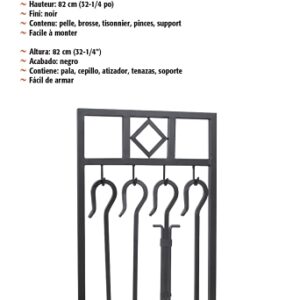 This tool set has all you need to tend a fire, made of heavy-duty construction, the black finish and square handles create a set that will look sleek by your fireplace. Height: 32-1/4 in.
