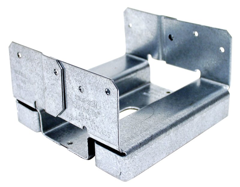 The ABA is designed to attach wooden posts to existing concrete. The built-in 1 in stand-off of this adjustable post-base helps to prevent rot at the end of the post. The ABA has a slotted anchor hole in the base for adjustability and attaches to the post with nails or Strong-Drive® SD Connector screws. This versatile post-base makes a cost-effective option for securing a post to the foundation. This post-base is available in model sizes for double 2X, 4 x 4, 4 x 6 and 6 x 6 lumber, both nominal and rough. The new double 2X size can be used for installing a structural post consisting of two 2 x 4 studs nailed together as well as for securing double 2X beams to a footing for ground-level decks.