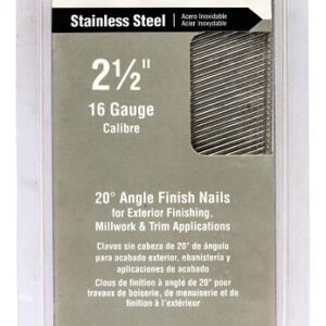 Simpson Strong-Tie Finishing Nail, Size: 8d, Adhesive Collation, 20 deg Collation, T-Style Head, Chisel Point, 16 ga, 0.065 in Diameter, 2-1/2 in Length, Stainless Steel, Suitable for: DeWalt® DC618K, Duo-Fast® FloorMaster 2505N, Hitachi® NT65GB Pneumatic ToolItem Specifications