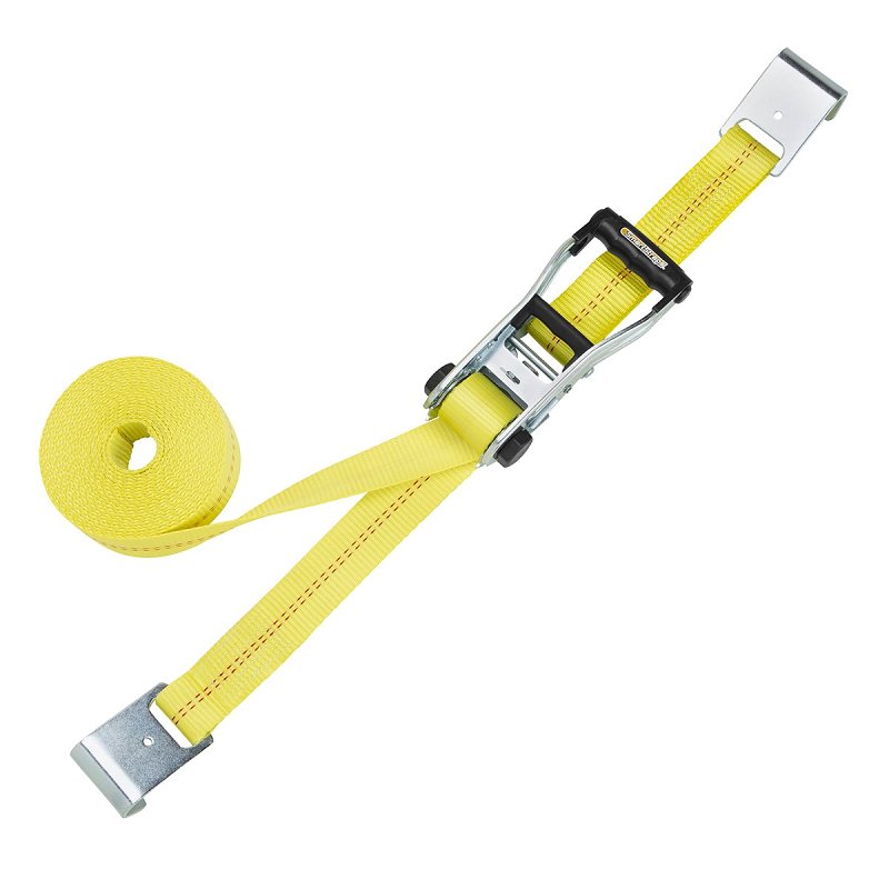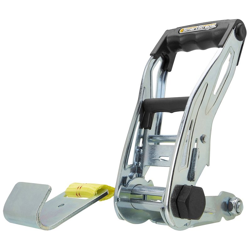 SmartStrap Stamped Rail Tie-Down, 3333 lb Weight, Breaking Strength: 10,000 lb, End Fitting Type: Flat Hook, End Fitting Material: Steel, Adjustment Type: Ratchet, Polyester/Steel, Yellow, 27 ft L, 2 in W, Suitable for: Heaviest Loads Often Hauled on a Large Trailer or Flatbed, Large Equipment, Larger Tractors, VehiclesItem Specifications