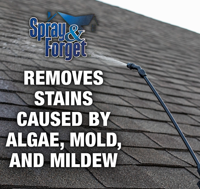 All-purpose exterior cleaner has a concentrated formula that cleans the exterior surfaces of your house without the need for potentially damaging pressure washing or brushing techniques. In fact, no rinsing is required. Just let mother nature do the rinsing for you. Its non-corrosive, non-caustic, non-acidic formula is biodegradable, eco-friendly and is designed to penetrate and dissolve stains caused by mildew, mold, algae, moss and lichen from all exterior surfaces such as all types of roofs, shutters, siding, decking, fences and more.