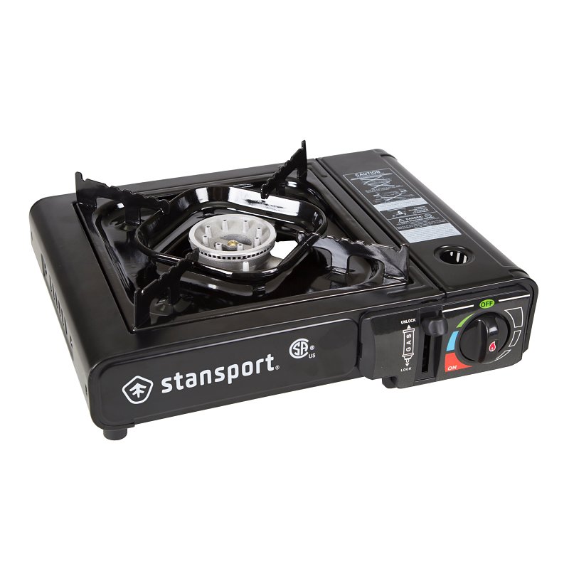 Step aside, campfire. With the Stansport® portable outdoor butane stove, you'll be cooking quickly, conveniently and never need to worry about firewood again. This stove burns cleanly and quietly on our Stansport® 8 oz butane fuel canister (which is sold separately) and starts with a hassle-free electronic ignition. 8000 Btu's of cooking power and sturdy stainless steel construction make this stove as durable as it is elegant. This single burner stove provides you with the most convenient way to cook while camping, catering, BBQing or other off-site cooking. The included hard plastic carrying case makes for a compact, easy-to-transport package.Item Specifications