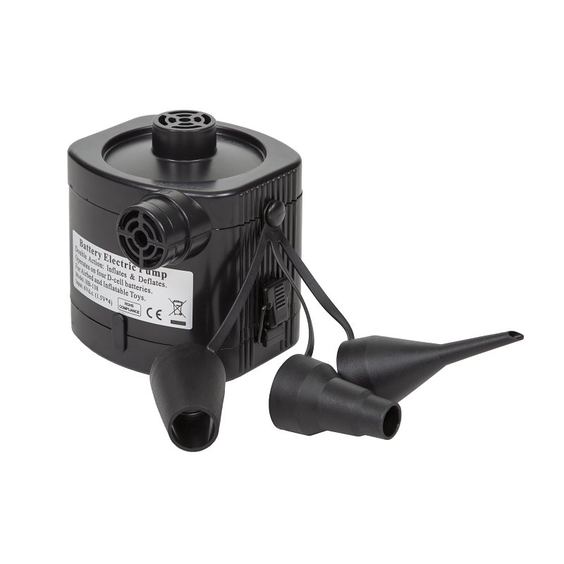 Quickly inflate air beds and all types of inflatables with our high-volume Stansportî electric air pump. This pump generating up to 0.42 psi and reversible airflow makes deflation quick and easy. Operates on 4 D-cell batteries (not included). Multiple nozzle attachments make this pump compatible with all of our products.