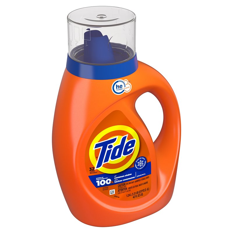 America's #1 trusted detergent, Tide original scent liquid laundry detergent helps keep your whites white and your colors colorful, wash after wash. It's high-efficiency variety has an improved formula, reengineered to attack tough body soils. Tide high-efficiency Turbo Clean detergents feature Smart Suds⢠technology. The quick collapsing suds of this high-efficiency detergent clean faster and rinse out quicker, even in cold cycles. Try the refreshing mountain spring or clean breeze scent. Both varieties are available in two formulas for use in regular and high-efficiency washing machines.Item Specifications