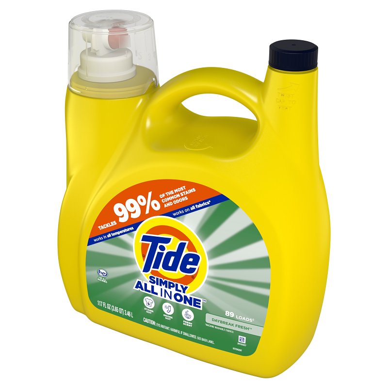 Get the right clean at the right price with Tide Simply Clean and Fresh with daybreak fresh scent. With 2x odor and stain fighting power, it targets tough odors deep inside fabrics fibers. And because it's so powerful, only one dose is needed per load and no pre-treating is necessary. Tide Clean and Fresh is tough on odors and easy on your wallet, which means all get is a consistent clean.Item Specifications