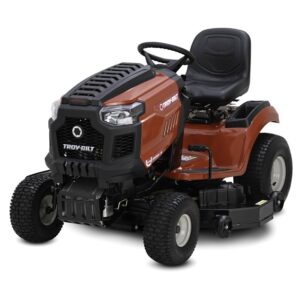 Troy-Bilt Riding Lawn Mower, Twin Cylinder Engine, Engine Specifications: Kohler Engine, 50 in Cutting Width, Hydrostatic Transmission, 16 in Turning Radius, High-Back Seat, 20 x 8 in Rear Wheel, 15 x 6 in Front Wheel, Electric Start, Steel Deck, Front Axle: IronItem Specifications