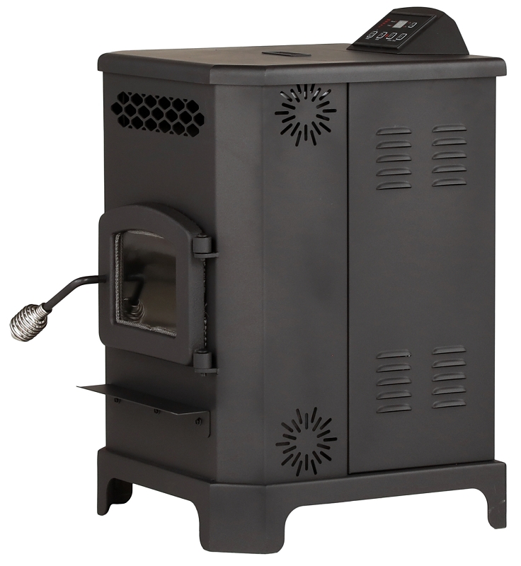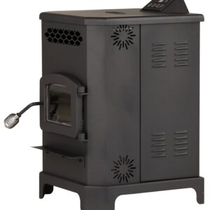Good things come in small packages and this pellet stove is sure to continue that tradition. By combining a full size burning system with a small cabinet and hopper, this stove combines the best of both worlds. It can heat up to 2200 sq-ft yet its small footprint and clearances allow it to fit easily into smaller areas. Upgraded digital controls with a remote control make this stove easy to adjust. The ceramic glass window comes with an air wash system to keep the fire viewable. The 20 lb hopper provides up to 13 hr of burn time and because of its size, you will get fewer auger jams due to collapsed pellets. Pellet heaters work by using a software driven control board to precisely deliver a pre determined amount of fuel from the hopper into a burn chamber. An electric heating element, used only in startup, heats the pellets until they ignite. The combustion blower forces air through the burn chamber and once ignited, it provides an active combustion of the pellets resulting in very little ash. The exhaust and heat pass through one side of air chambers where on the other side, the variable speed room blower gathers the heat and distributes this through the room. This entire process results in a very clean burning, efficient heating machine for your home.Item Specifications