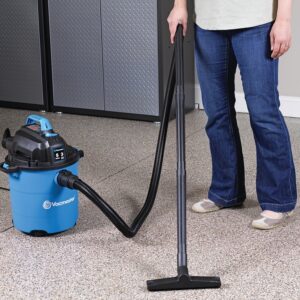 Powered by a strong 3 peak hp motor, this is an ideal compact wet/dry vac for the home. Conveniently store and maneuver this 5 gal shop vacuum with the balanced top handle and on-board storage. Picks up dry debris and liquid messes with ease, it even converts to a blower. Features an 8 ft power cord with cord wrap, on-board accessory storage, 360 deg swivel casters and 6 ft x 1-1/4 in locking hose. It includes a noise diffuser, three extension wands, 2-in-1 utility nozzle, re-usable foam filter and a floor brush/squeegee nozzle.Item Specifications
