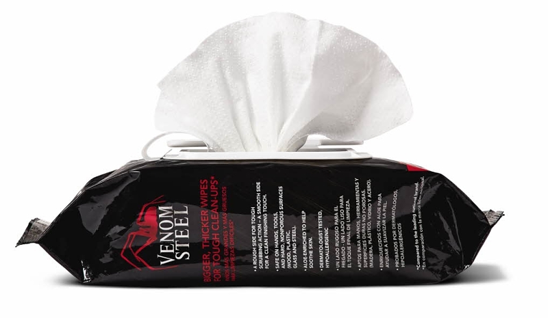 Venom Steel Workshop Wipe with Scrubbing Beads, Odor/Scent: Citrus, 8 in L, 12 in W, Effective to Remove: Caulk, Grease, Grime, Latex Paint, Marker, OilItem Specifications