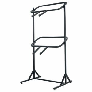 Displays up to three wheelbarrows. Saves floor space. Dimension of 32 in x 98 in x 30 in.