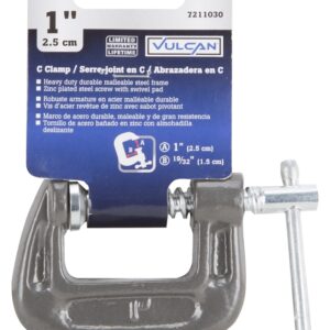 Home > Hand Tools > Clamps Fastening Tools > Clamps and Vises > C Clamps > Vulcan JL27360 C-Clamp, 1 in Max Opening Size, 0.6 in D Throat, Steel Body, Gray Body