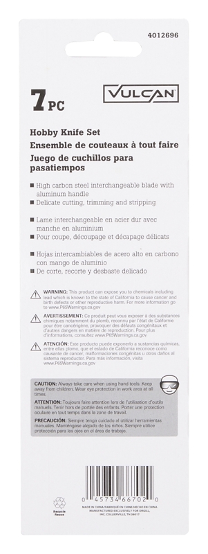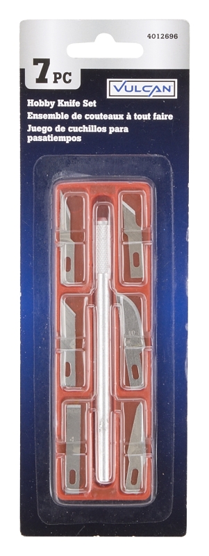 Vulcan Hobby Knife Set, High Carbon Steel Blade, Blade Thickness: 0.4 mm, Number of Blades: 6, Aluminum Handle, Handle Color: Silver, 4 in L Handle, 5-1/8 in OAL, Includes: 6 BladesItem Specifications