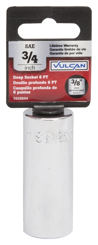 Vulcan MT6496053 Drive Socket, 3/4 in Socket, 3/8 in Drive, 6-Point, Chrome Vanadium Steel, Chrome