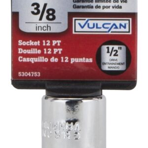 Vulcan MT6514715 Drive Socket, 3/8 in Socket, 1/2 in Drive, 12-Point, Chrome Vanadium Steel, Chrome