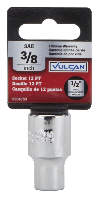Home > Hand Tools > Mechanics Tools > Hand Mechanics > Sockets 1 2 Dr Sae > Vulcan MT6514715 Drive Socket, 3/8 in Socket, 1/2 in Drive, 12-Point, Chrome Vanadium Steel, Chrome