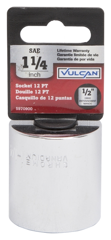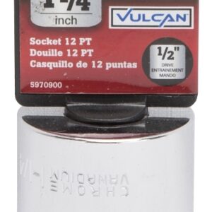 The Vulcan 1/2 drive sockets are manufactured from chrome vanadium steel and heat treated for added strength and wear protection; providing durability for a lifetime of hard use. Each socket features chamfered lead INS for quick and easy placement onto fasteners every time. Their polished chrome finish resist rust and corrosion and easily wipes clean of oil and dirt.Item Specifications