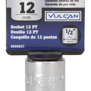 The Vulcan 1/2 drive sockets are manufactured from chrome vanadium steel and heat treated for added strength and wear protection; providing durability for a lifetime of hard use. Each socket features chamfered lead INS for quick and easy placement onto fasteners every time. Their polished chrome finish resist rust and corrosion and easily wipes clean of oil and dirt.Item Specifications
